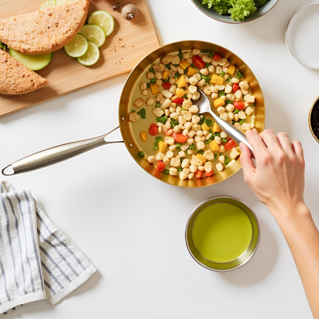 I was looking for something traditional yet practical, and this bronze cookware set is exactly that! The food cooks evenly and has a unique flavor, which my family loves. Plus, it looks beautiful on the dining table, adding a touch of class. Highly recommended for those who love authentic cooking experiences.”