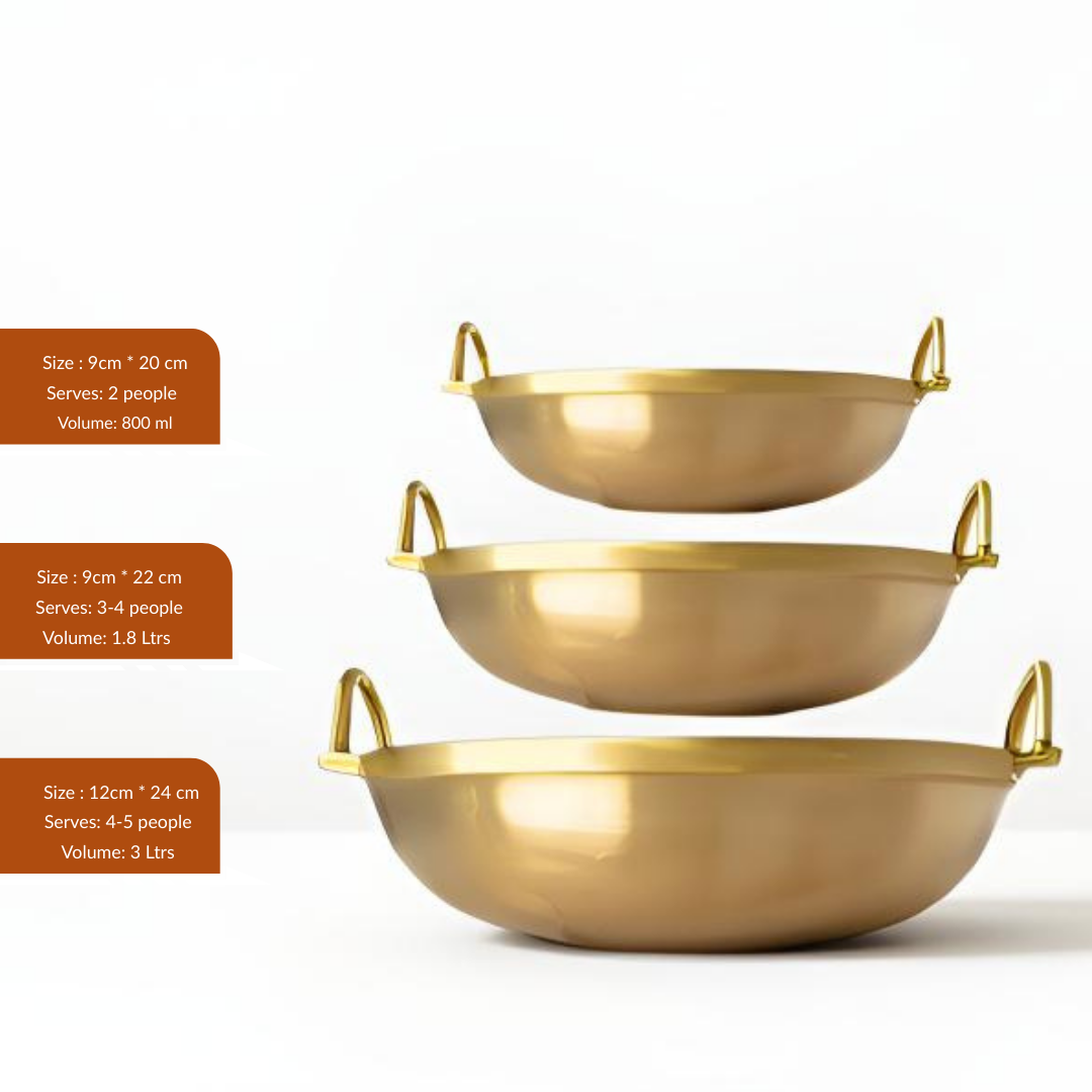 - High-Quality Bronze:** Made from premium bronze, these kadais ensure even heat distribution for perfectly cooked meals every time.