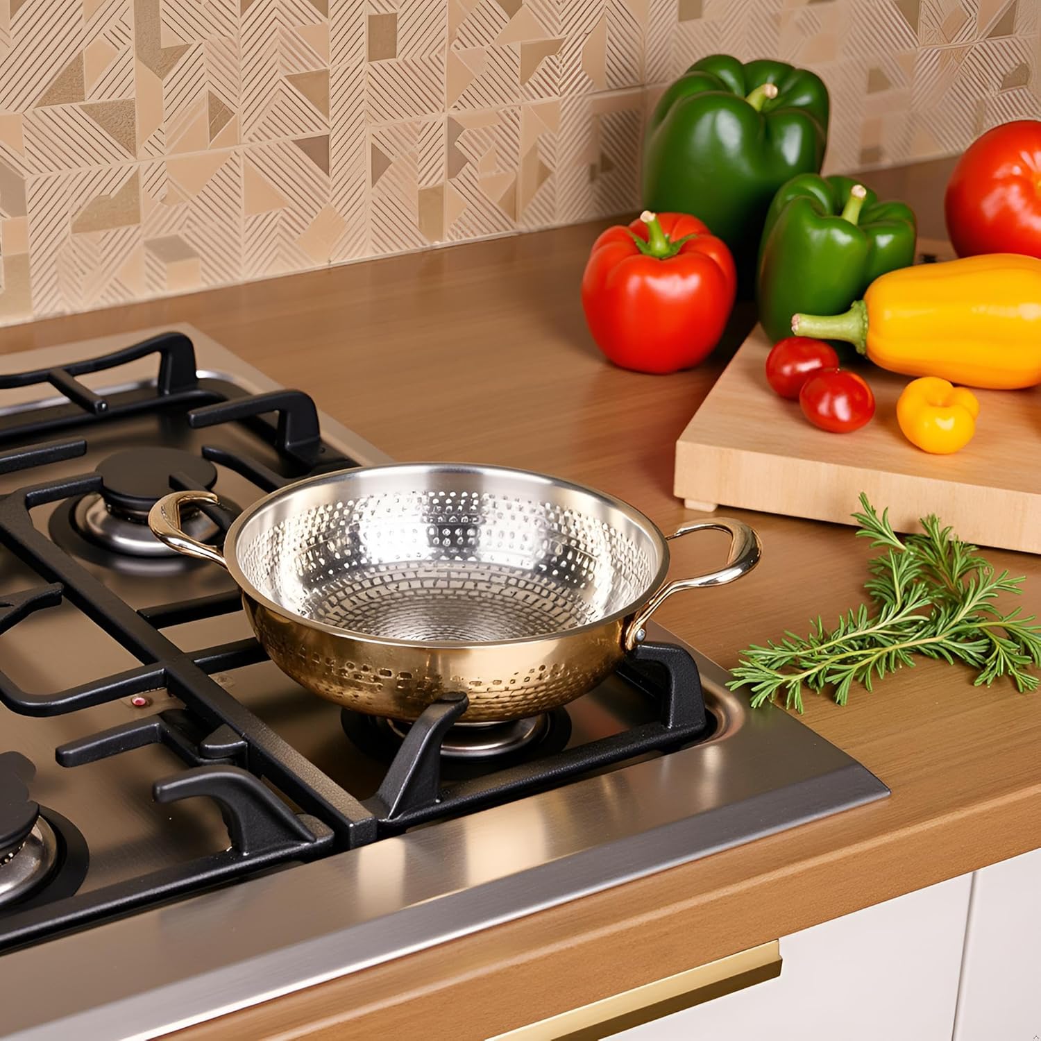 Hand Crafted Bronze kadai is a alloy of copper and tin and has been a popular cookware for centuries Bronze is a good conductor of heat and helps cook evenly and helps in slow cooking This traditional Kerala bronze cookware is great for your meat and vegetables recipes Food Cooked in Bronze can retain most of its nutrients unlike any other cookware This Cookware is machine polished for easy Use and care Hand moulded and casted in kerala maintaining high standards