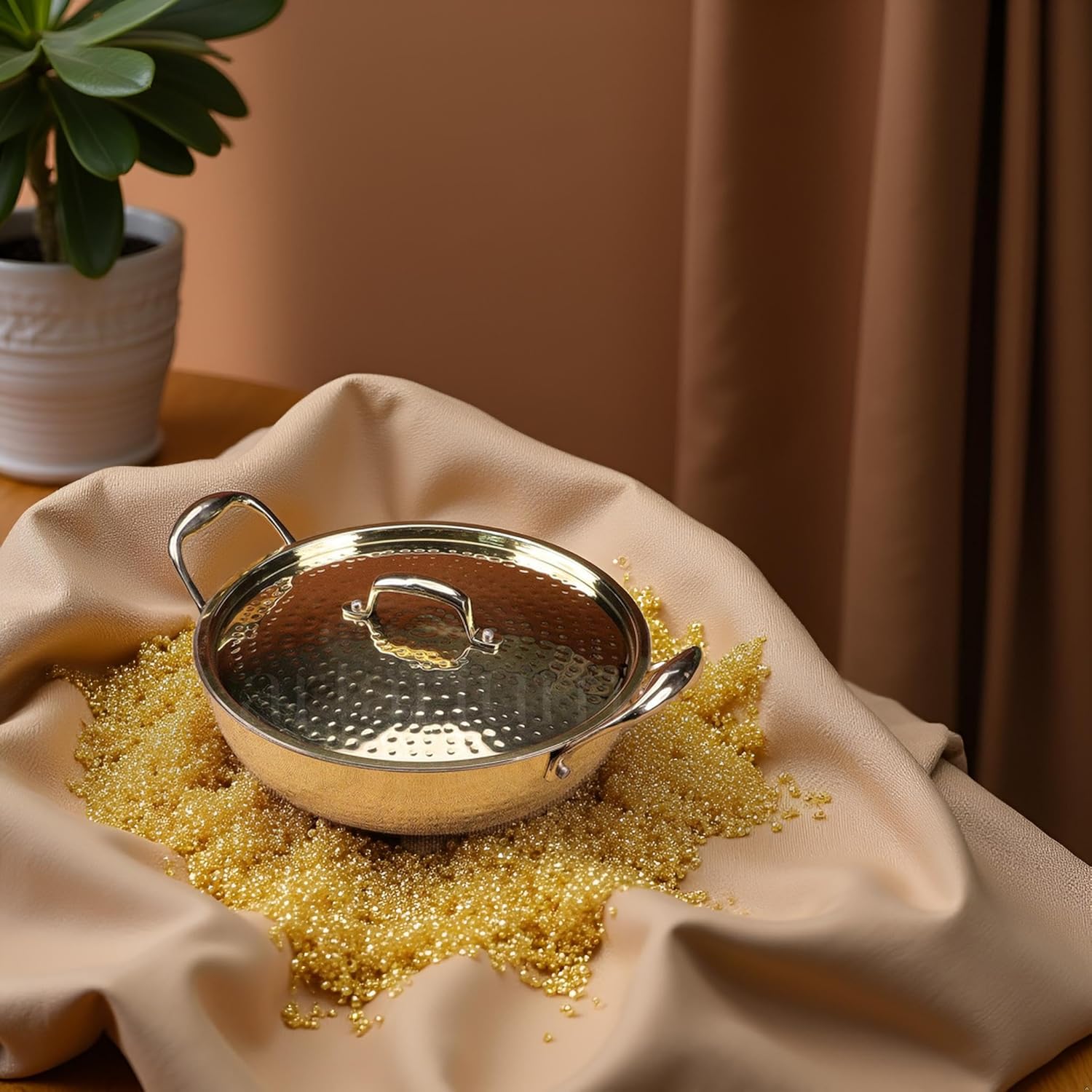 Nutrion Brass Kadhai 3L with Insulated Heat-Resistant Handle and Lid | 100% Pure Brass Tin Coated Kadai for Cooking | Non-Stick and Chemical-Free
