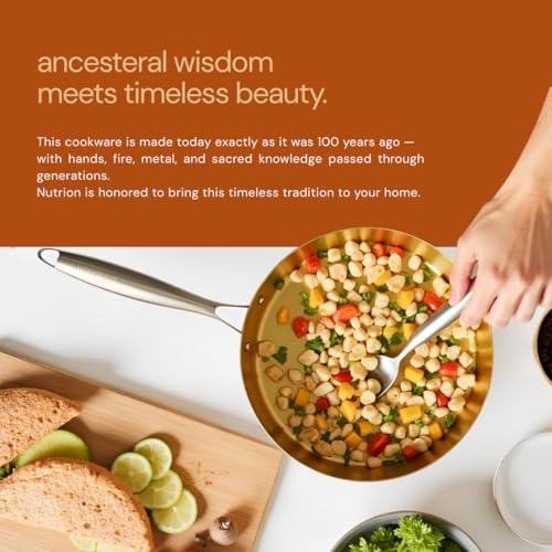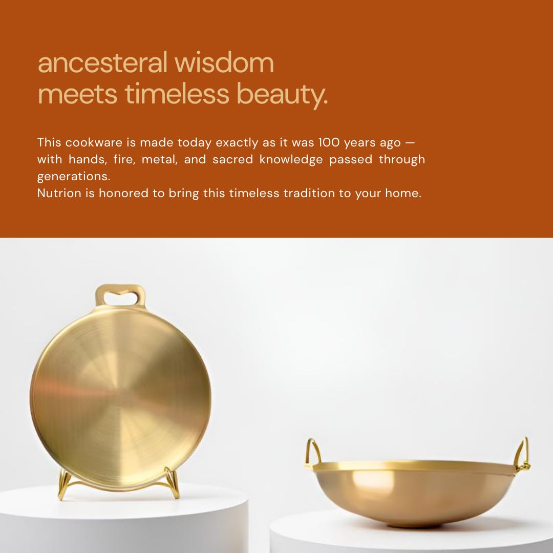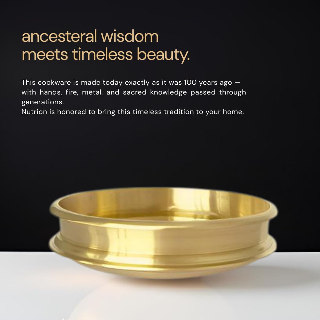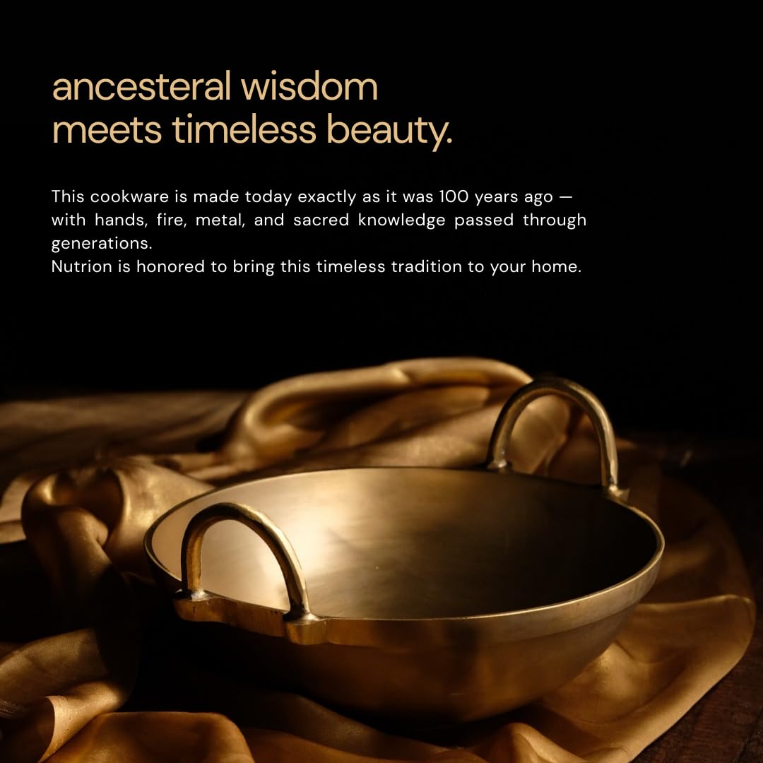 NUTRION Bronze Kadai Cookware Combo – 10″/3 L Kadai & 9″/1.8 – Tin-Coated Traditional Kerala Bronze, Chemical-Free, Even-Heat, Durable Duo