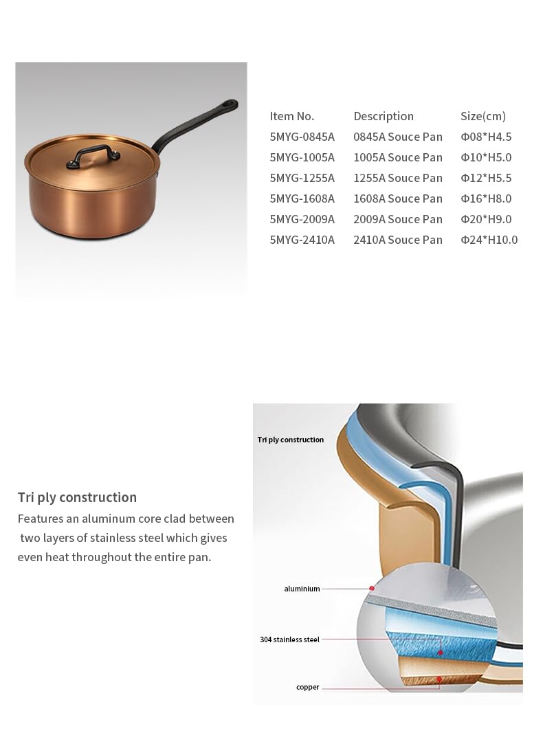Nutrion Chefs Special Triply Steel cookware (1.5 Litre Copper Finish Pan)