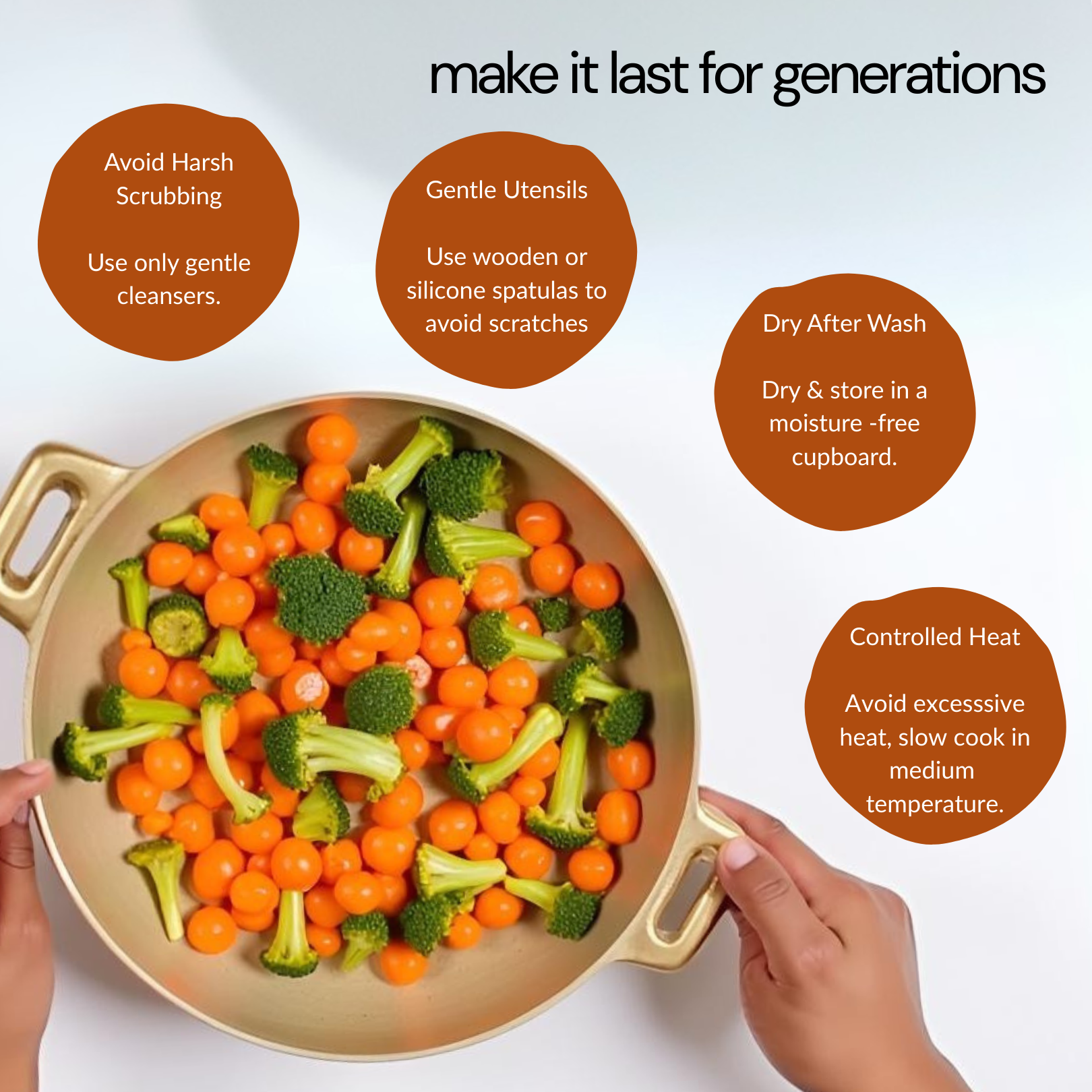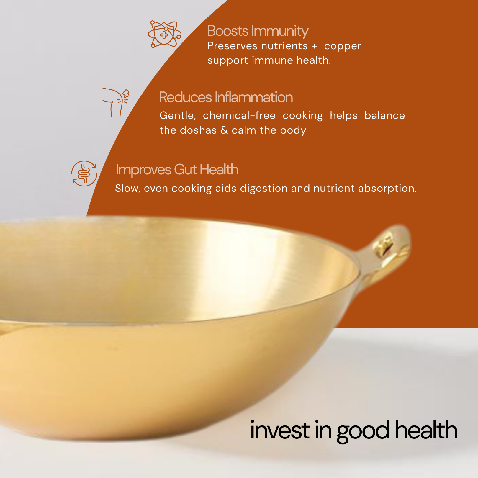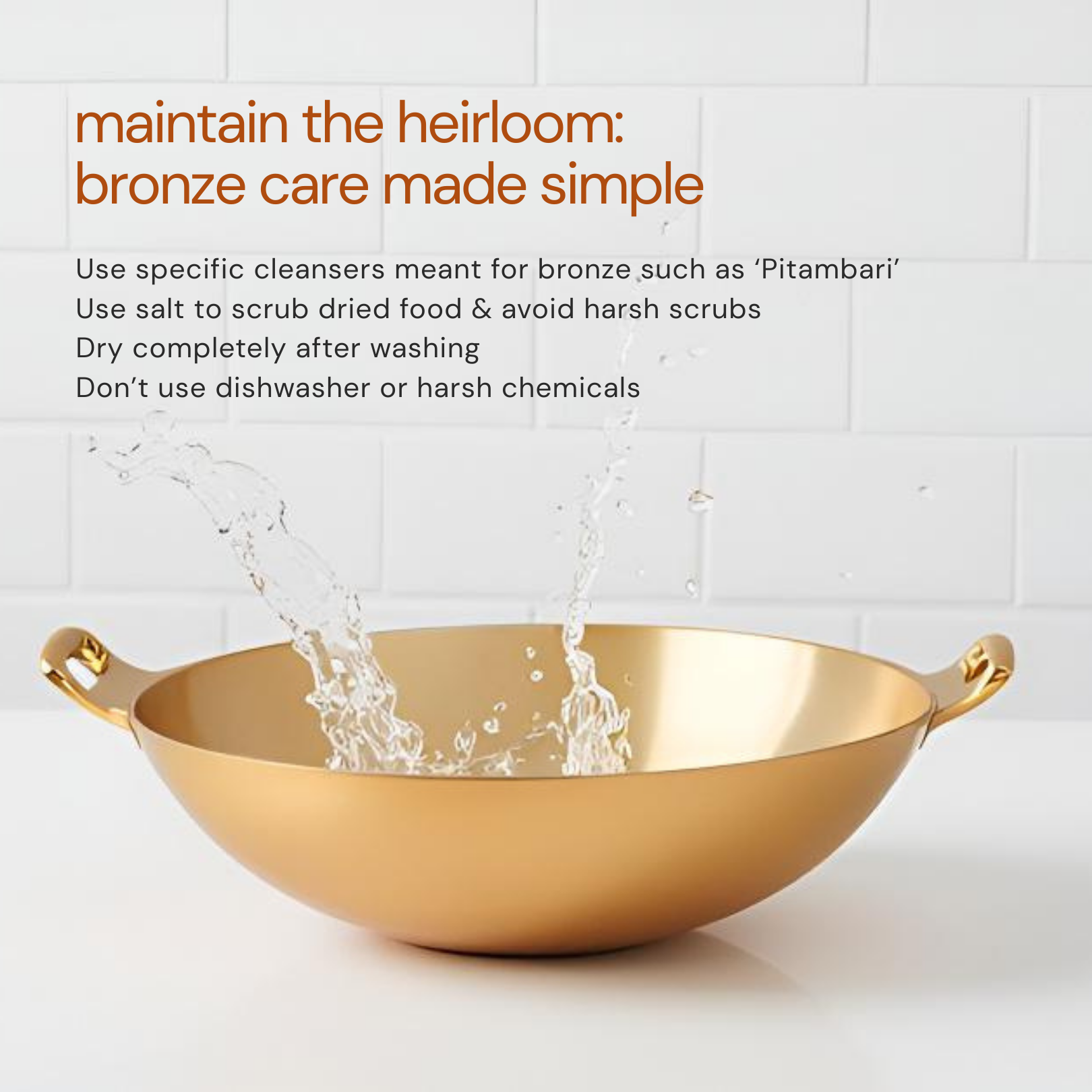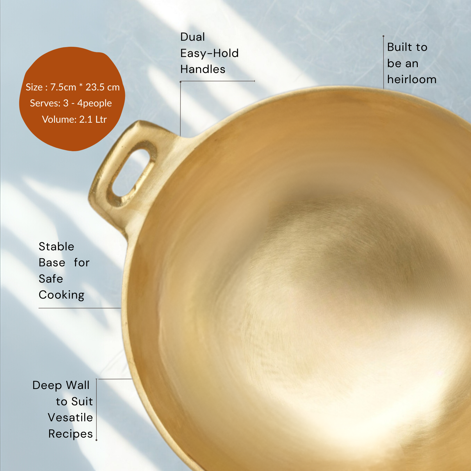 Enhance your kitchen with the timeless elegance and superior quality of our 9-Inch Premium Bronze Kadai. Crafted from 100% pure bronze, this kadai combines tradition with durability, designed to last generations while adding a touch of sophistication to your cooking space. Perfect for both everyday cooking and festive meals, it ensures even heat distribution, helping retain the nutrients and authentic flavors in your food.